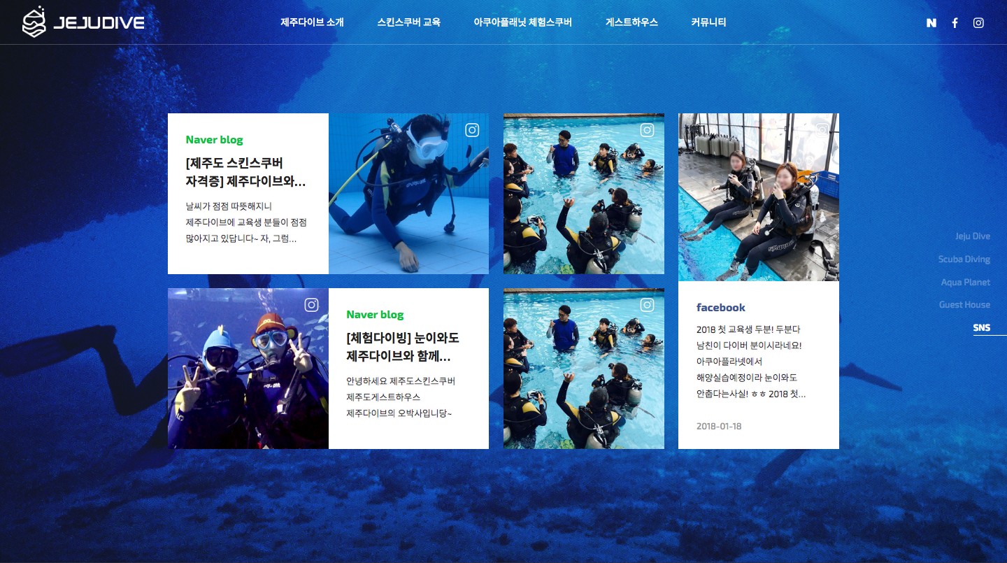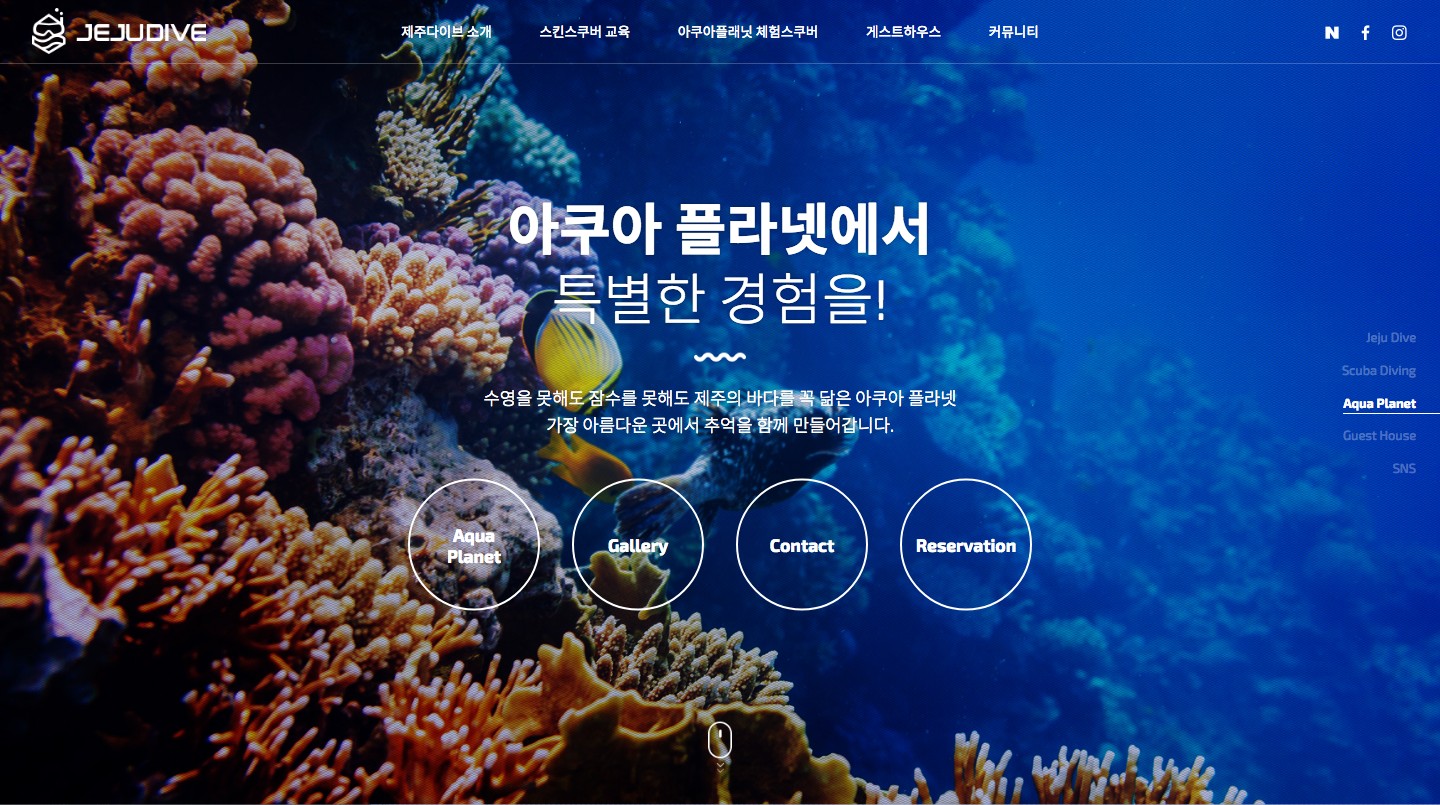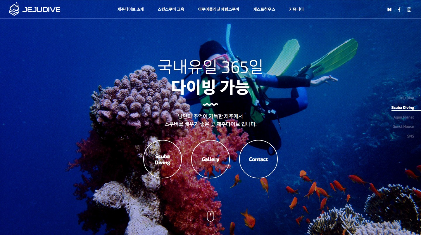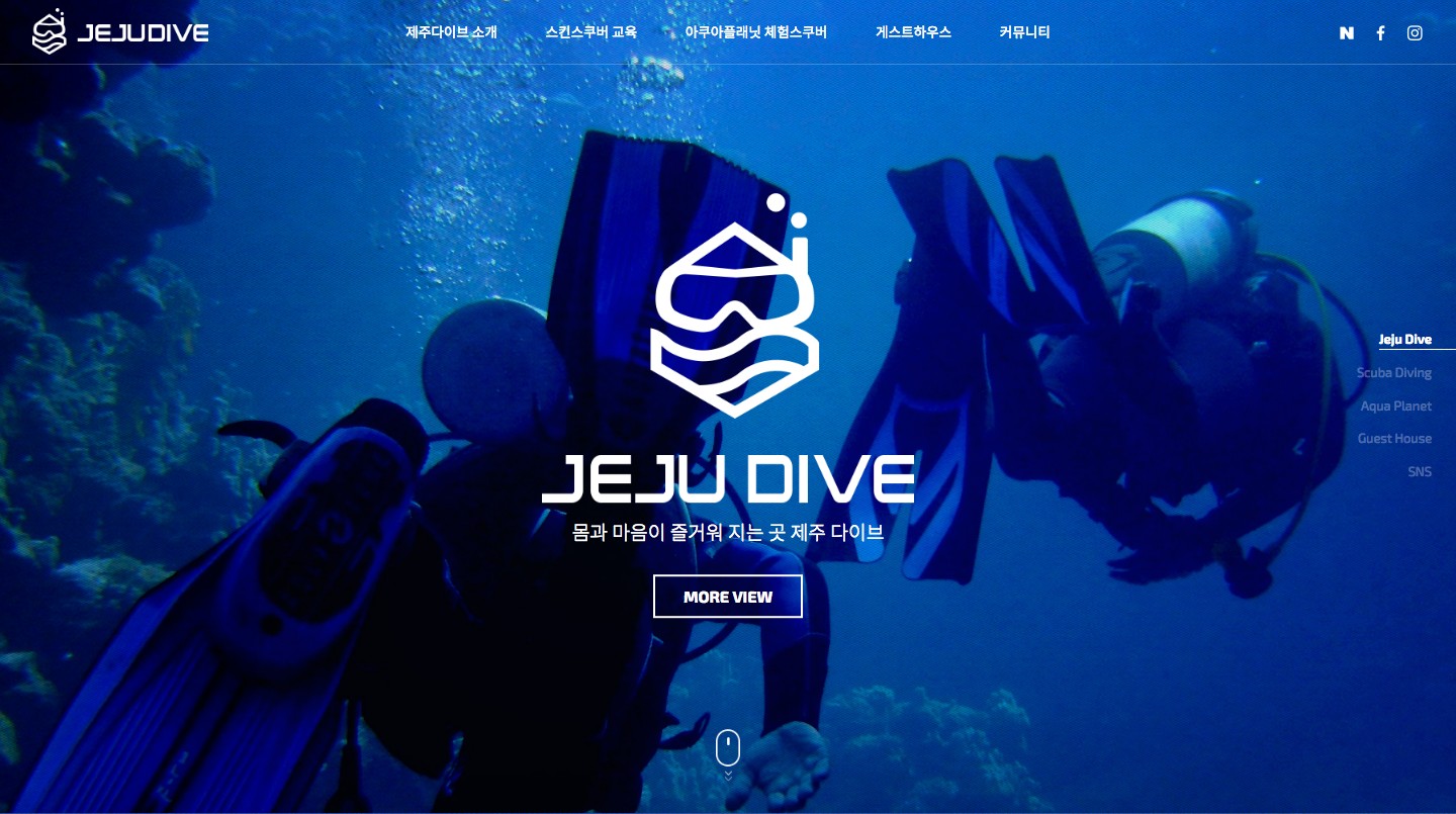 제주다이브 웹 사이트 시안Web Site / Publishing VIEW PROJECT Client제주다이브Completed2018년 10월ServicesDesign / PublishingParticipation100%